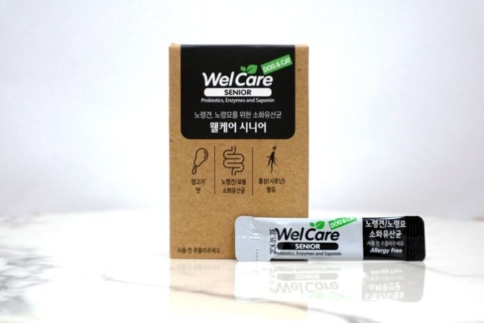 웰케어 시니어는 미국 특허를 받은 겔 타입의 유산균으로, 기존의 웰케어에 세 가지 생유산균이 추가돼 총 8가지 생유산균과 5가지 소화 효소가 함유된 노령견·노령묘 전용 겔 유산균이다. 일반적인 반려동물 유산균이 가루 형태인 것에 반해 웰케어 시니어는 겔 타입 유산균이라 호흡기로 빨려 들어갈 위험이 없고, 겔 제형이 위산으로부터 유산균을 보호해 유산균이 위산에 파괴되지 않고 장까지 안전하게 도달한다.